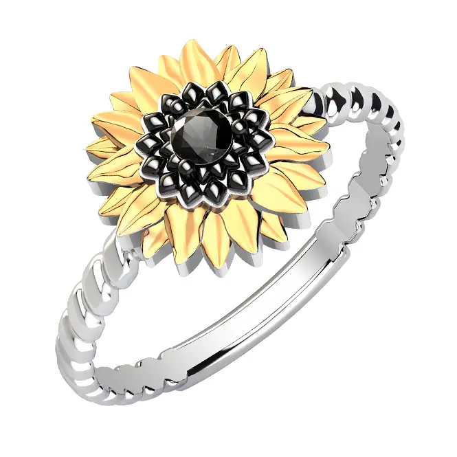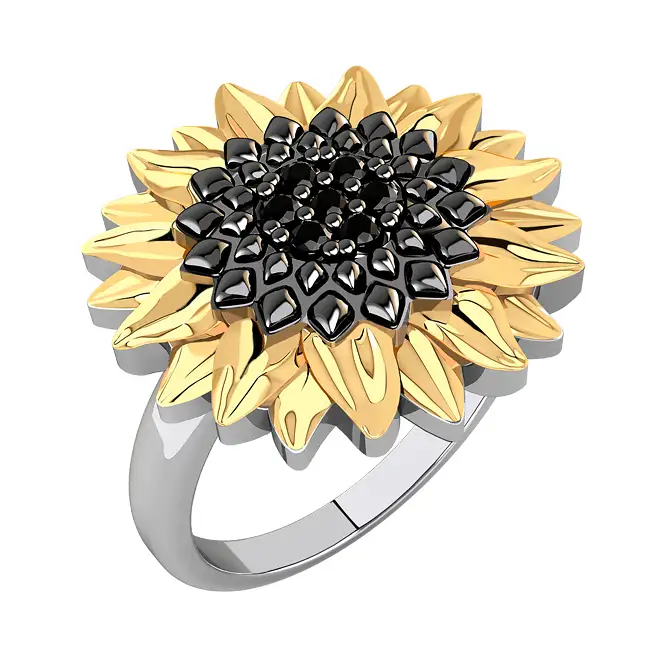 Серебряное кольцо с фианитами и золочением