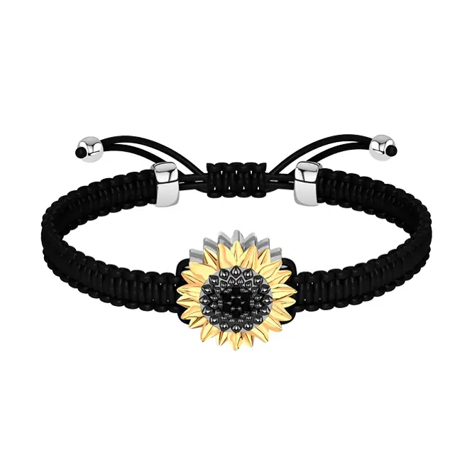Серебряный плетеный браслет с фианитами и золочением