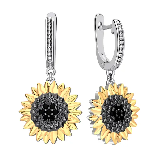 Серебряные серьги с фианитами и золочением