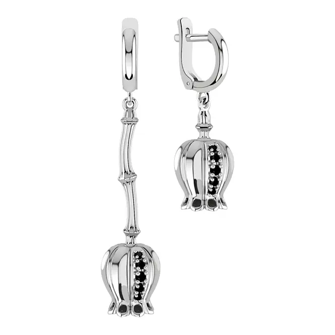 Серебряные серьги с фианитами и эмалью